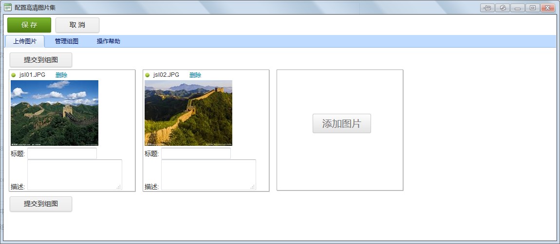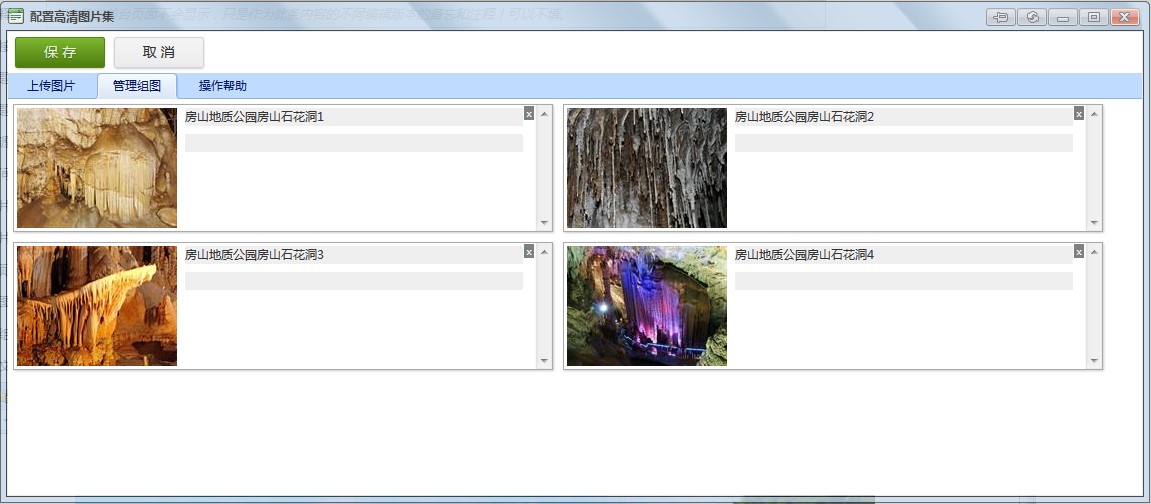 在组图字段,点击“配置组图”按钮,就可以批量上传、批量编辑、排序组图中的图片。